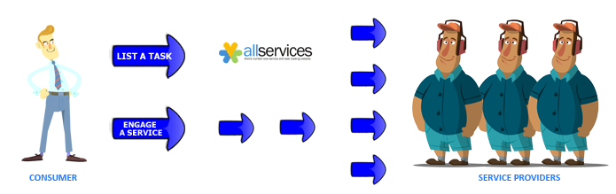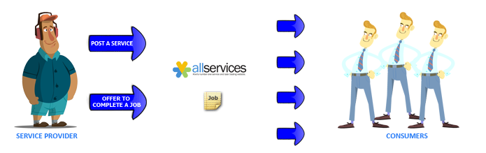 AllServices aim to provide a safe and simple to use website that brings together customers and providers of services. Registered users can be both a service provider and a consumer of other providers services. Offering a service or fulfilling a request for service, registering a job/request for service or engaging a service provider can be simply and effectively achieved.